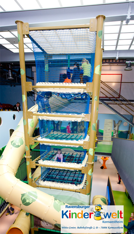 Kinderwelt für die Allerkleinsten Die ganz kleinen Kinderwelt-Besucher freuen sich über speziell an ihre Fertigkeiten angepasste Attraktionen: Sie krabbeln in das Quips Bällebad, und tauchen in das Becken mit den bunten Bällen ein. Wer mag, spielt „Quips“, und lässt die farbigen Bälle in die passenden Öffnungen plumpsen. Um die Ecke wartet die kuschelweiche ministeps® Raupe, zum Schmusen, Spielen und Entdecken. Gestatten: Ravo Bereits am Eingang begrüßt ein freundlicher orangegelber Spielkegel die großen und kleinen Besucher: Kinderwelt-Maskottchen Ravo trägt eine freche Baseball-Kappe, und schüttelt den Kindern die Hand. Wer ein besonders großer Ravo-Fan ist, bekommt als Andenken an das Treffen sogar eine Autogrammkarte geschenkt. Energie tanken für die nächste Spielerunde? Dann auf in Ravos Bistro: Kuchen, Snacks und andere feine Leckereien warten auf die kleinen Feinschmecker - und Mama und Papa lockt der Duft des frisch aufgeschäumten Cappuccinos. Forscher in spe und Nachwuchs-Spieleerfinder Kluge Köpfchen sind in den Genius Workshops genau richtig. Genius - Die junge WissensCommunity von Daimler möchte spielerisch Freude an Naturwissenschaft und Technik wecken. Die vier verschiedenen Workshops sind für Schulkassen der Stufen 1 bis 6 konzipiert, und nach vorheriger Anmeldung kostenlos buchbar. Wie entsteht ein Spiel? Das erfahren Kinder in der Ravensburger Spielewerkstatt. Fachkundige Mitarbeiter erläutern Schritt für Schritt, worauf es beim Weg von der ersten Idee bis hin zum fertigen Brettspiel ankommt. Dann suchen sich die Nachwuchs-Erfinder aus Spielkegeln, Hütchen, Würfeln und Chips ihr Lieblingsmaterial aus und gestalten auf einem Blanko-Plan ihr eigenes Brettspiel. Die Teilnahmegebühr beträgt dafür 3 Euro. Die Kinderwelt hat ein Herz für Geburtstagskinder Geburtstagskinder bis 14 Jahre haben an ihrem Jubeltag freien Eintritt in die Ravensburger Kinderwelt – und wer mag, feiert hier gemeinsam mit seinen Freunden. Von „Billy Biber“ bis „Lotti Karotti“: in den vier Motto-Geburtstagsräumen, die beliebte Ravensburger Kinderspiele als Thema haben, ist viel Platz für bunte, ausgelassene Geburtstagsnachmittage – und natürlich schaut auch Maskottchen Ravo zum Gratulieren vorbei. Hier spielen alle Kinder aus Kornwestheim mit Direkt neben der Kinderwelt sind drei Kornwestheimer Schülerhortgruppen untergebracht. Mit ihnen und weiteren öffentlichen Einrichtungen der Stadt gibt es verschiedenste Kooperationen. Dank der Unterstützung durch die Paul-Lechler-Stiftung erhalten Kinder aus Kornwestheimer Einrichtungen, wenn sie als Gruppe organisiert über die Schule bzw. städtische oder kirchliche Kindergärten in die Kinderwelt kommen, eine finanzielle Förderung. Durch diese Förderung der Paul-Lechler-Stiftung können Kornwestheimer Kinder unabhängig von ihrer sozialen Herkunft, die Vorteile der Ravensburger Kinderwelt erfahren, sich dort neue Wissensgebiete erschließen, sich bewegen und spielen oder sich in Workshops und Teams eigene Projekte erarbeiten. Starke Zusammenarbeit mit klaren Spielregeln Hinter der Ravensburger Kinderwelt Kornwestheim stecken das Unternehmen Ravensburger – bekannt durch sein Markenzeichen, das blaue Dreieck – und die Stadt Kornwestheim, die die Kinderwelt als Eigenbetrieb unter Leitung des Ersten Bürgermeisters Dietmar Allgaier führt. Er erläutert: „Hier arbeiten eine Kommune und ein pädagogisch orientiertes Unternehmen zusammen – das ist in dieser Größenordnung bisher einmalig.“ Daraus entstand in nur einjähriger Bauzeit die Ravensburger Kinderwelt, die für alle Eltern und Kinder im Großraum Stuttgart das Ziel für einen unvergesslichen Familienausflug werden soll – getreu dem Motto der Kinderwelt: „Gemeinsam Großes erleben“. Die Ravensburger Kinderwelt hat täglich außer montags geöffnet (in den Ferien in Baden-Württemberg ist montags geöffnet); alle Informationen über Öffnungszeiten, Eintrittspreise, Ruhetage und Anreise stehen auf www.ravensburger-kinderwelt.de. | ||||||||||