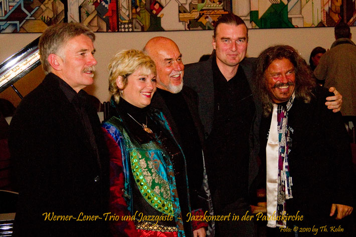 Begleitet werden die beiden Musikstars vom Trio des Pianisten und Komponisten Werner Lener. Am Kontrabass Thomas Krisch und am Schlagzeug Hans Fickelscher beschränken sich keineswegs nur auf Aktivitäten im Hintergrund, sondern sorgen mit zahlreichen Soloeinlagen für besondere Höhepunkte im Programm.