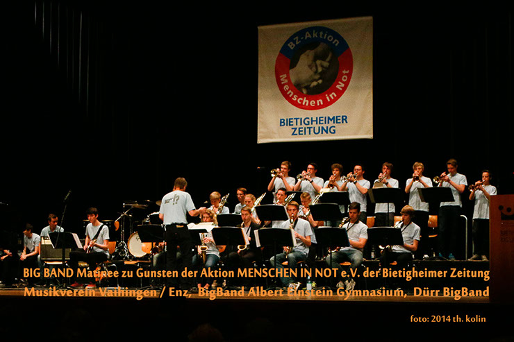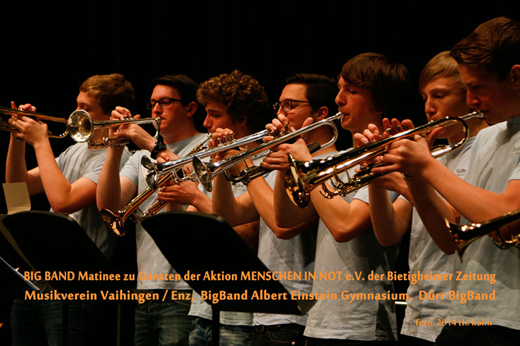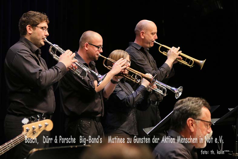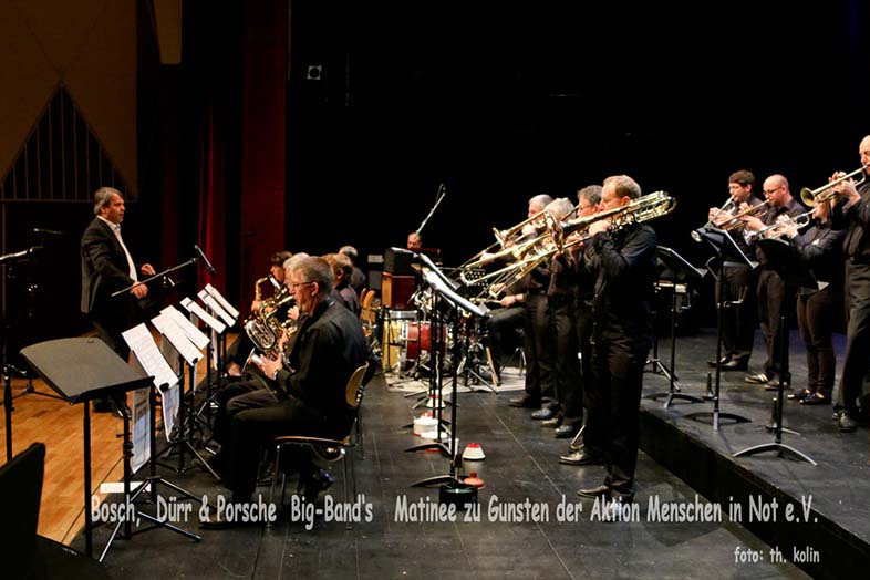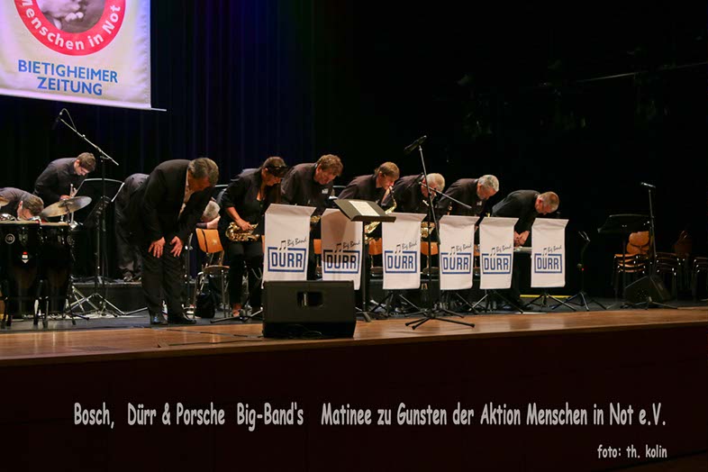 Bereits drei Mal fand unter Federführung der DÜRR BigBand eine Bigband Matinee zu Gunsten der Aktion „Menschen in Not“ statt. Mit dabei waren u. a. die Bigband der Musikschule Bietigheim-Bissingen, die Daimler Bigband und die Porsche Bigband.