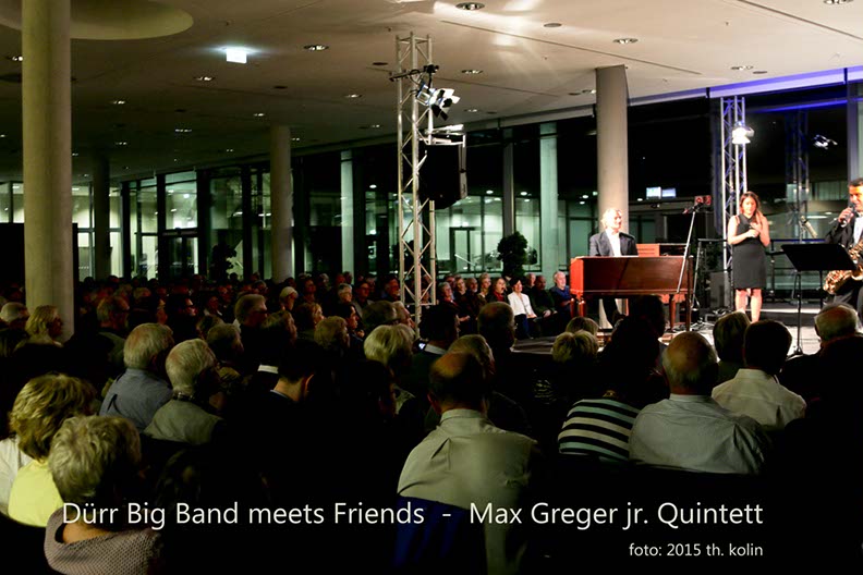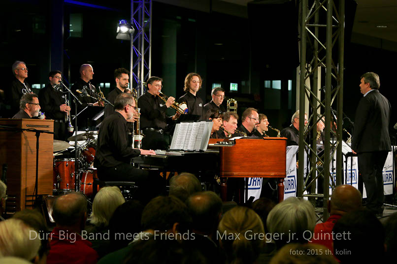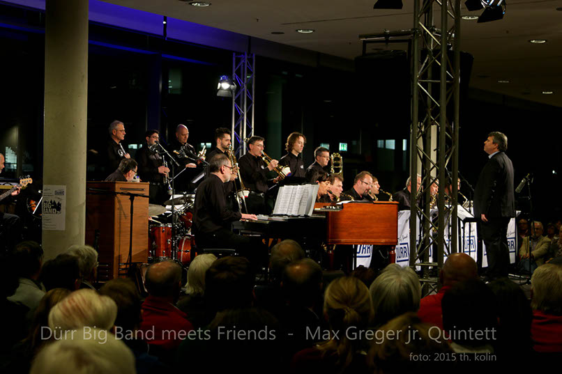Am 22. 10. 2015 war es wieder soweit. Die DÜRR BigBand hatte zum fünften Mal in Folge in den Campus der Firma DÜRR eingeladen. Vor ca. 400 Gästen machte die DÜRR BigBand den Auftakt mit „American Petrol“, einem Klassiker der Glenn Miller Band. Das Publikum wurde sofort in die richtige Stimmung versetzt. Nach weiteren mitreißenden Stücken wie „Take Five“ und „Sing, Sing, Sing“ wechselte die Band in südamerikanische Rhythmen. Dargeboten wurde u.a. „Sway“ und „Brazil“. Ohne Zugabe durfte die Band nicht von der Bühne gehen und spielte mit „In the mood“, den größten Hit, der jemals für eine Bigband geschrieben wurde – ein Originalarrangement der Glenn Miller Band.